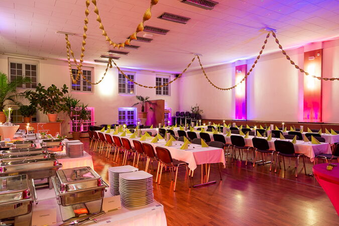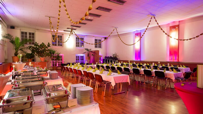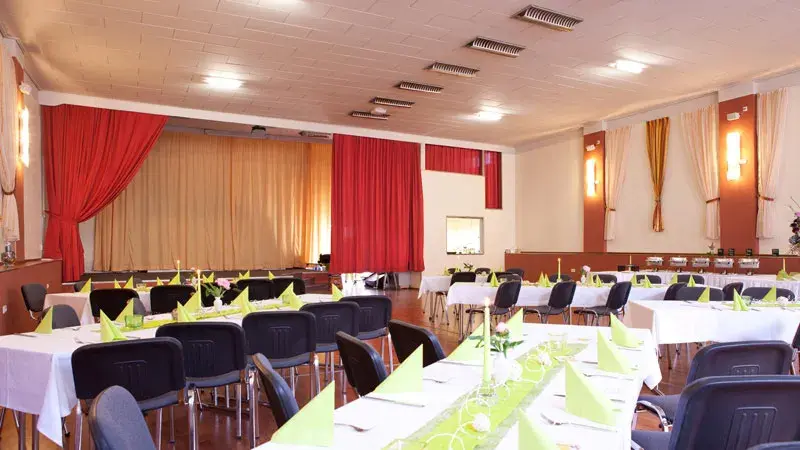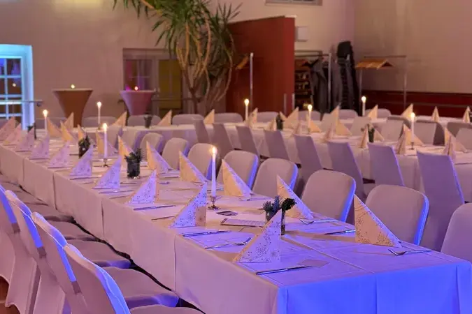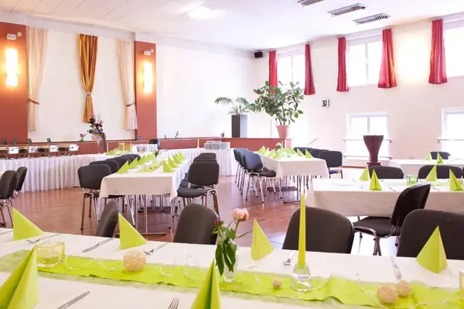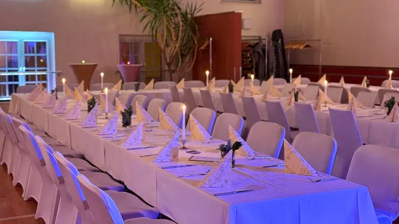 Unser Festsaal bietet den passenden Rahmen für Hochzeiten, Familienfeiern, Firmenfeiern, Weihnachtsfeiern, Konferenzen, Seminare, Vorträge und Jubiläen.